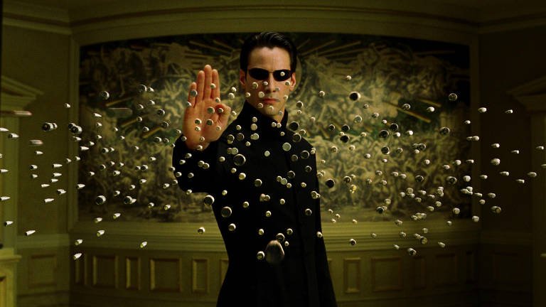 Matrix revolucionou os efeitos visuais ao apresentar ao mundo o famoso bullet time, técnica em que a câmera parece se mover ao redor de uma cena enquanto o tempo fica quase parado.